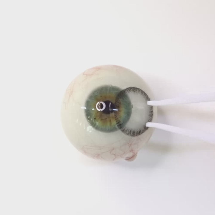 瞳の輪郭をくっきり見せる「サークルレンズ」タイプのデザインで、瞳の大きさを強調しながら、より鮮明で印象的な目元に整えてくれます。