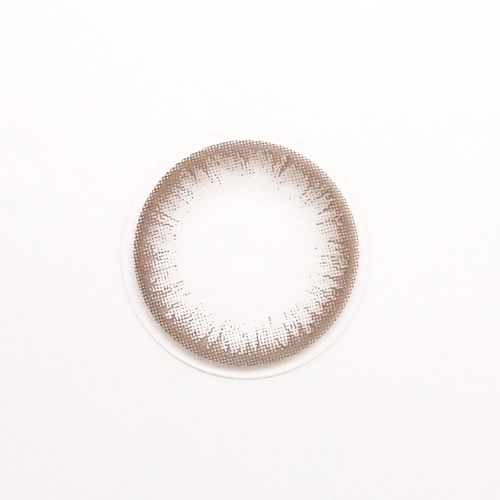 レンズ全体の色味はグレーがかったブラウン、いわゆるグレーブラウンに近いカラーです。外側に向かうほど色が濃くなるグラデーションが見られますが、全体的には彩度の低い落ち着いたトーンに仕上がっています。