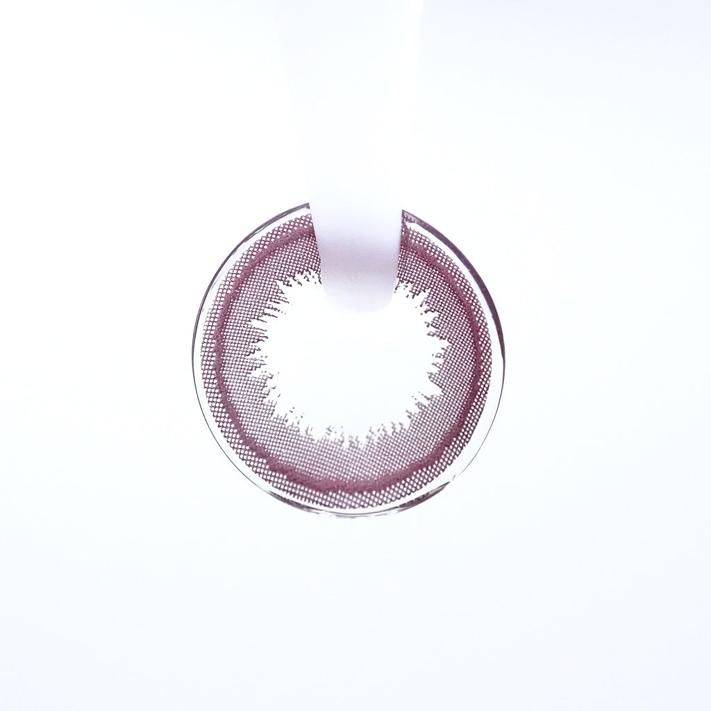 外側のリングは、にじみのないシャープなダークブラウンで、目元をすっきりと印象的に見せます。内側には、不規則なスパイク(稲妻)状のパターンを採用し、虹彩の模様を強調します。パターン密度は控えめで、装着時には自身の瞳の色と自然に重なり、瞳孔との境界も柔らかく見えるように仕上げています。