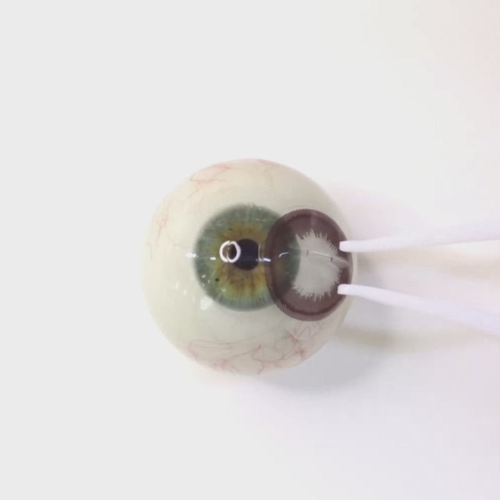 ベースカラーは深みのあるブラウン。フチに向かうほど濃いトーンを採用し、瞳の輪郭をくっきりと際立たせます。中心へ向かうにつれて色が徐々に淡くなり、透明部分と自然に馴染むよう設計されています。