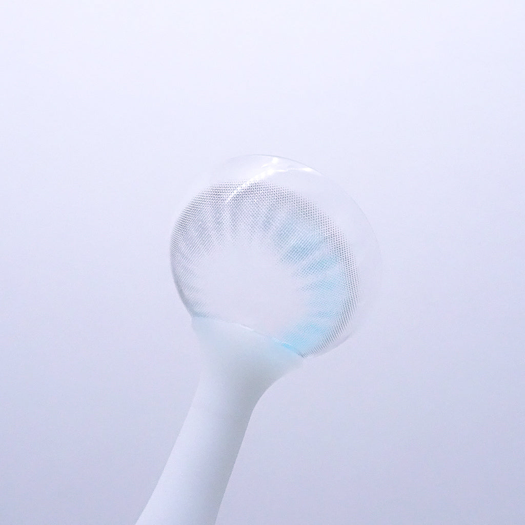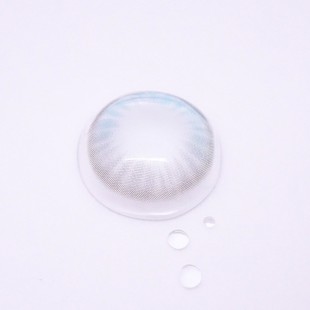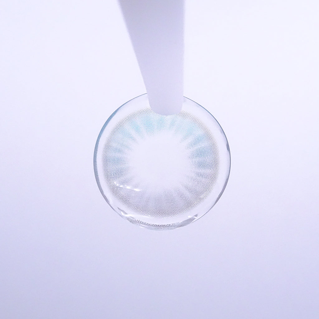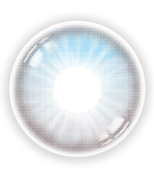 ブルーとホワイトが混ざった明るいグラデーションにより、瞳孔周りが自然につながります。中心部は淡く、外側に向かうにつれて密度が高くなり、瞳の立体感が強調されます。透明感が高く、もとの瞳の色がほどよく透けて見えるため、自然な発色が可能です。