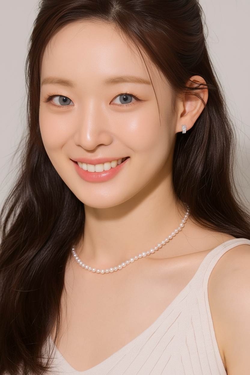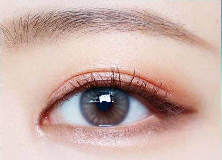 清涼感と透明感のある目元になり、涼しげでクリーンな印象を与えます。クールトーンメイクやホワイト・シルバー系のアクセサリーと相性が良いでしょう。明るい照明下では、氷のように澄んだブルーグレーの瞳に見えます。暗めの瞳の上に装着しても発色は控えめで、人形のような洗練された雰囲気を演出します。